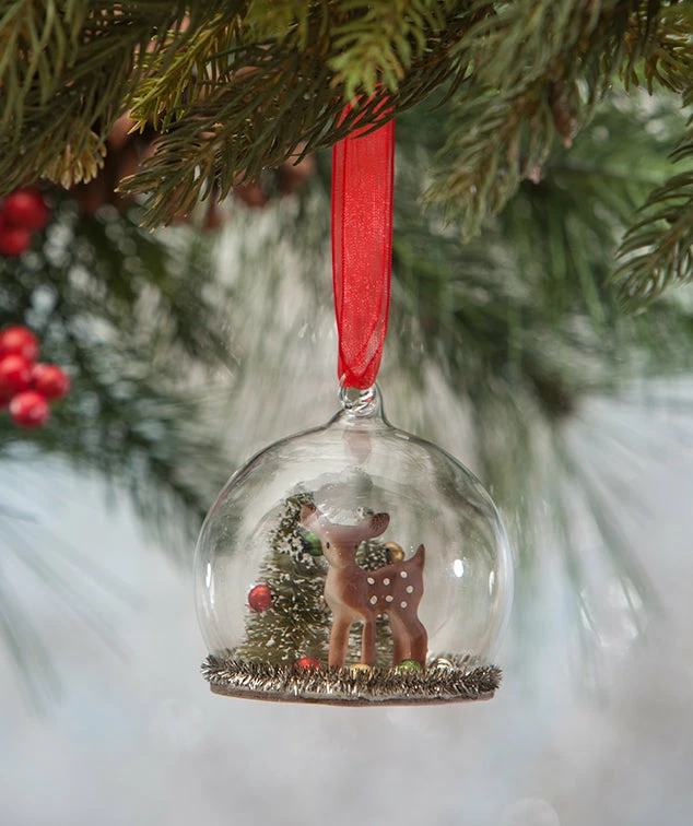 Add a traditional touch to your Christmas tree with this darling little Christmas Deer in Glass Globe Ornament.