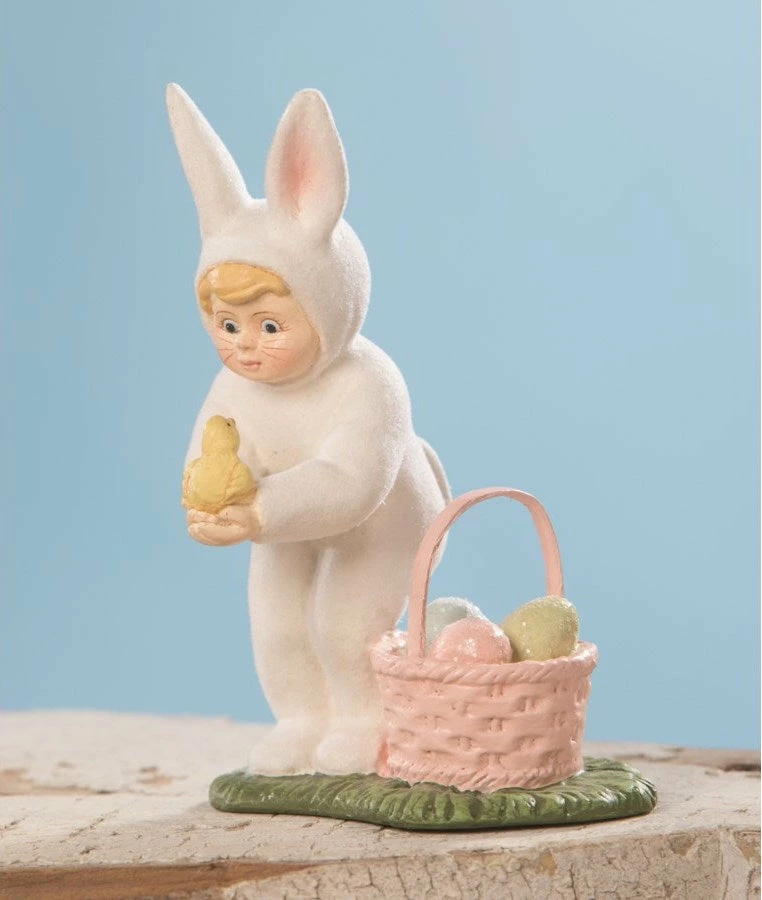 Bring the excitement of Easter home with this darling little girl wearing a fuzzy flocked Easter Bunny costume.