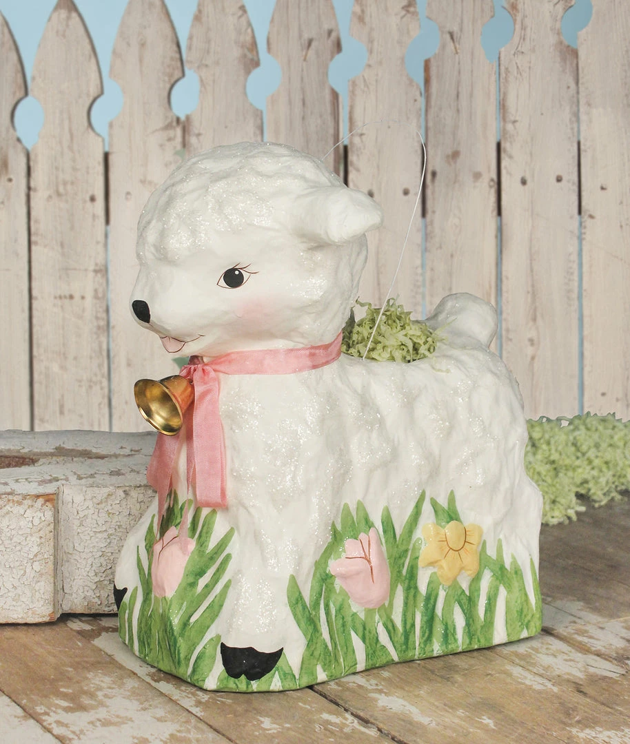 Give your Easter decorating a sweet vintage-inspired touch with this paper mache Retro Lamb Bucket.
