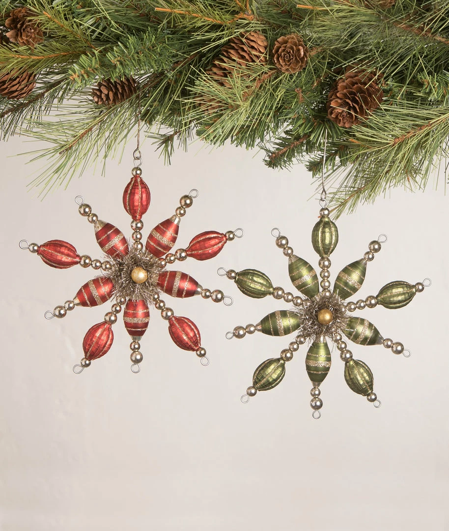 Give your holiday decor an old fashioned Christmas touch with these antiqued red and green Vintage Starburst Ornaments.