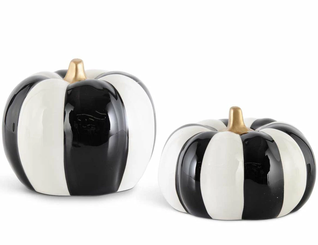 Bring designer style to your Halloween decorating with these with striking Black & White Striped Pumpkins with Gold Stems