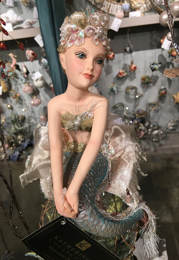 Sun, sand, and surf awaits you. Take time to feel the breeze and dream with this beautiful Katherine’s Collection coastal mermaid.