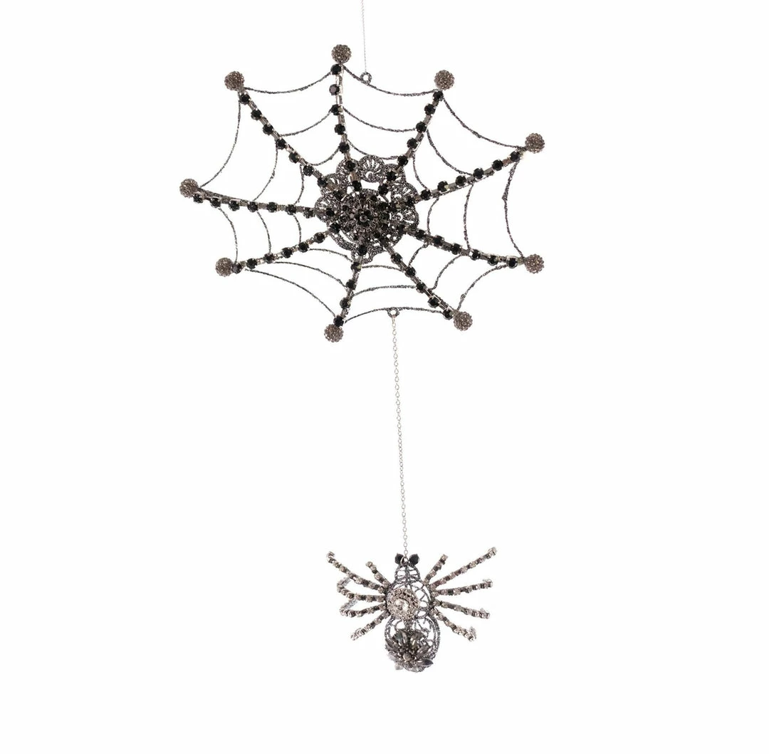Create a fanciful fright with this eerily elegant Jeweled Spider Web with Dangling Spider.