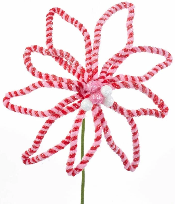 Embellish wreaths, garlands, trees, or add a custom touch to wrapped gifts with this whimsical Pink Candy Stripe Poinsettia Pick.