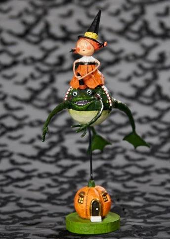 Create a cute Halloween scene with this funny frog flying witch creatively conceived by artist Lori Mitchell.