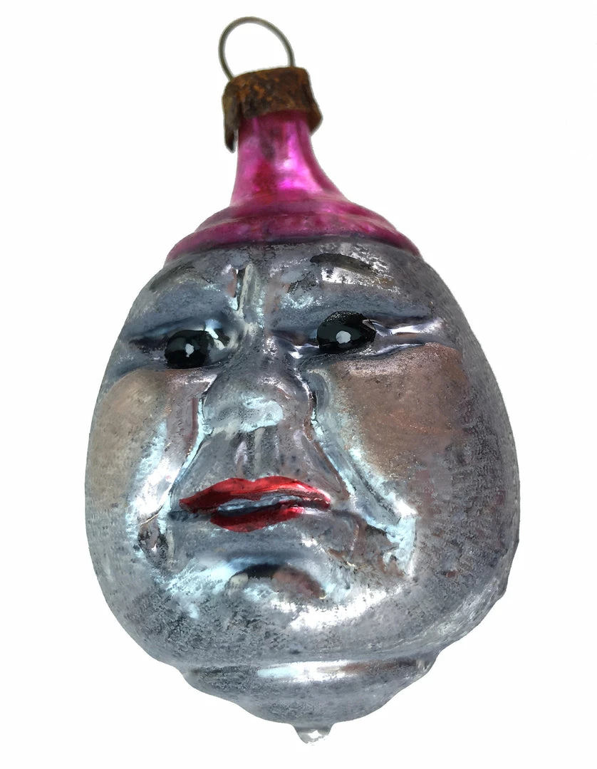 - New ornament formed with vintage german molds finished with old-stock metal hanger.