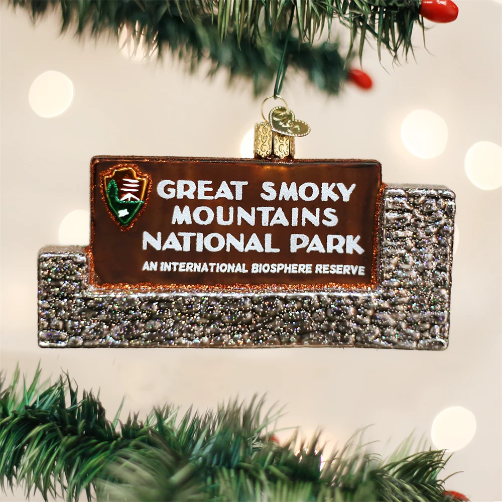 - 4.75″ Glass Great Smoky Mountains National Park Sign Ornament.