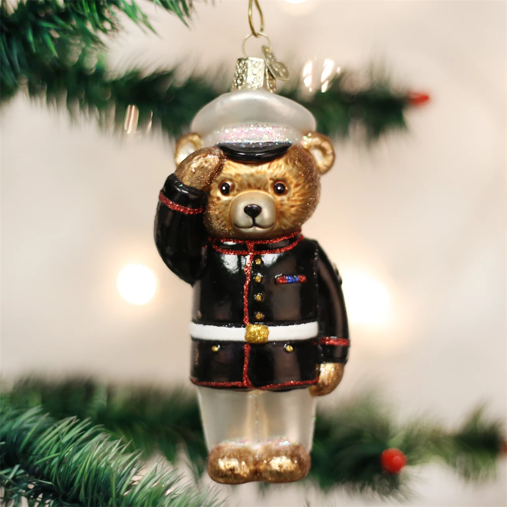 Honor a soldier or veteran with this saluting Marine Bear Ornament, which stands tall to salute the love of country.