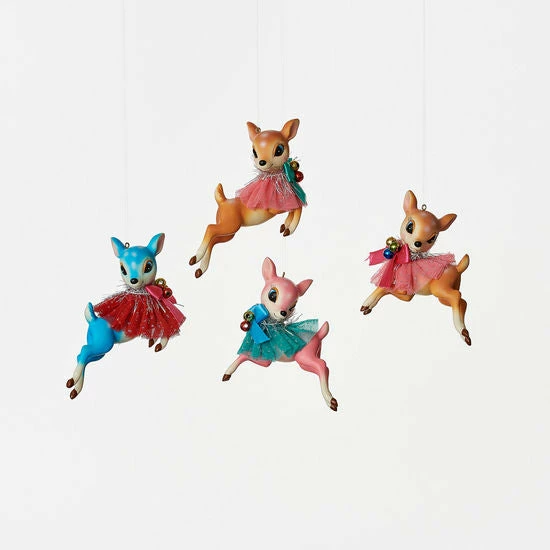 Trim your tree with cheer and merriment with these festive Retro Leaping Deer Ornaments.