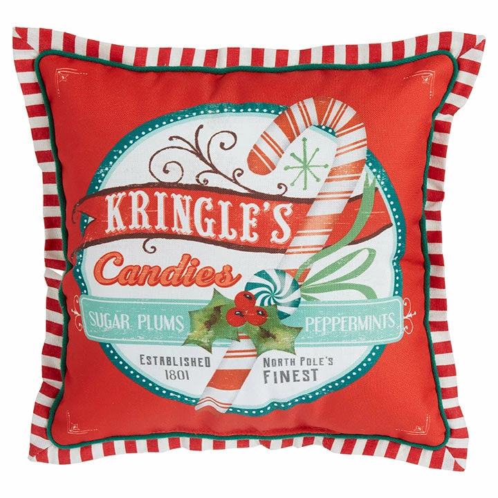 Rest easy this Christmas with the Kringle’s Candies Pillow designed by artist Lori Siebert!