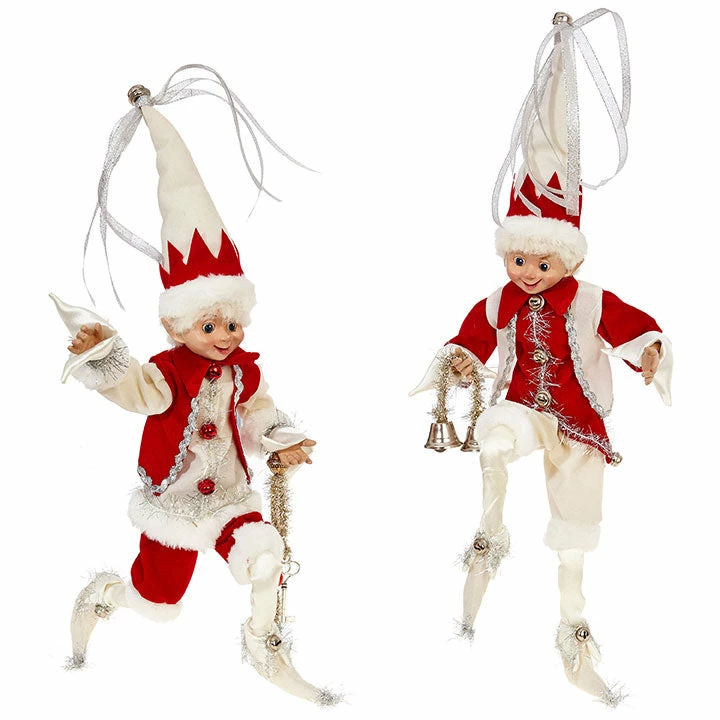 Posable red and winter white elves with silver bells will set the stage for a magical Christmas season.