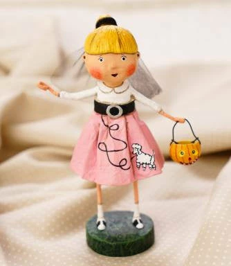 Nifty Nelda in cool 50’s style wears a pink poodle skirt and black and white saddle shoes. She has little crush on heart throb Cool Rider.