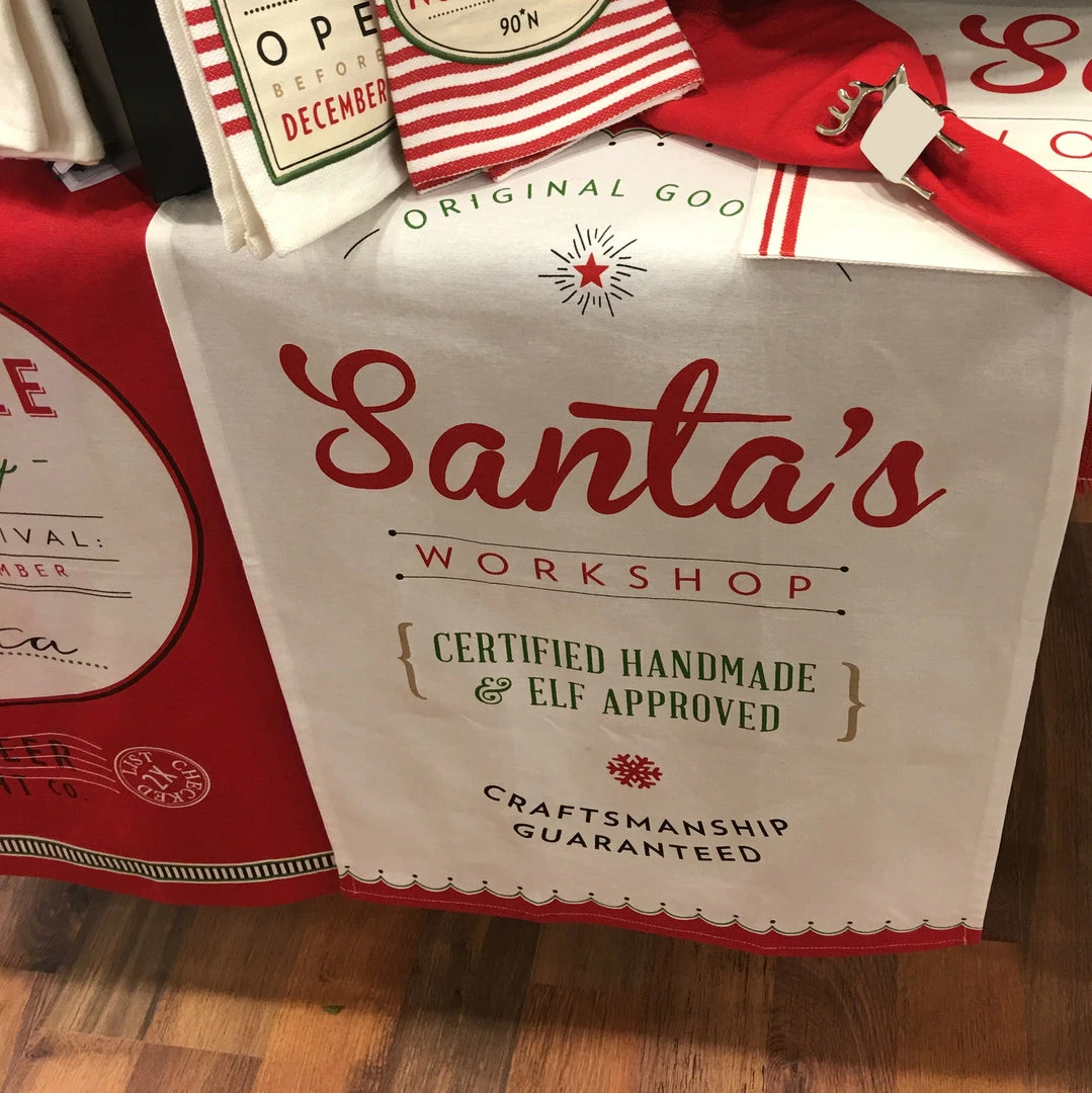Instantly transform your kitchen for the holidays and serve up a Christmas to remember with these festive Santa’s Workshop Dish Towels.