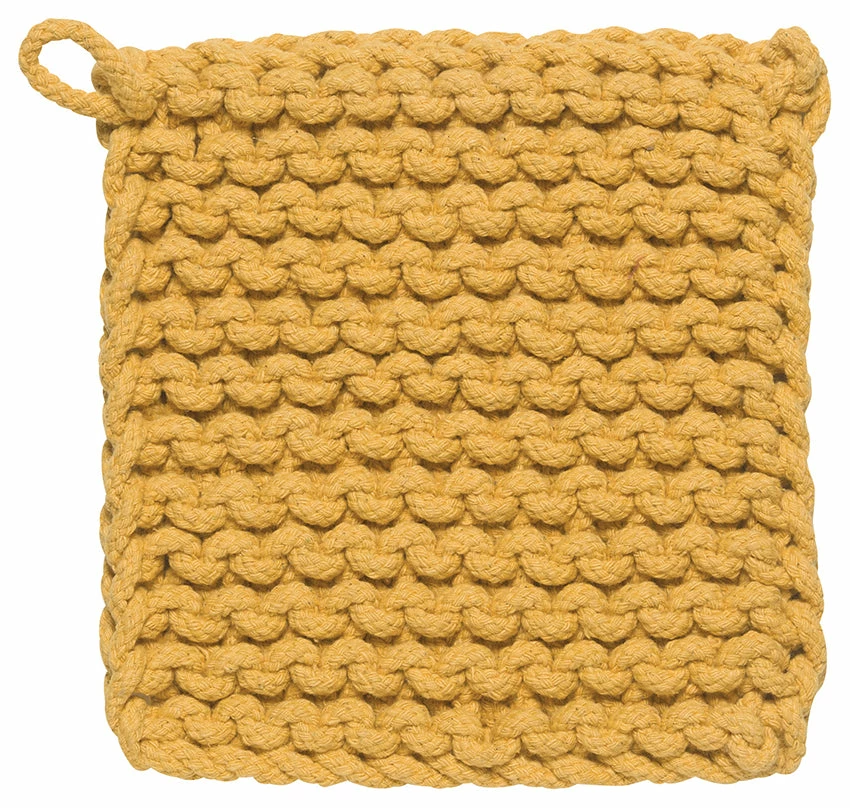 Spruce up your kitchen with this stylish and functional honey yellow Chunky Knit Cotton Potholder.