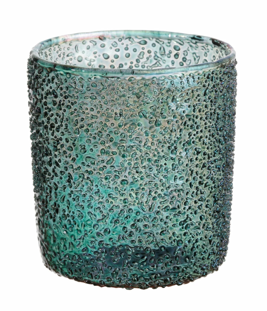 Illuminate your surrounding with a soft glow with these beaded art glass votive holders by Jim Marvin.