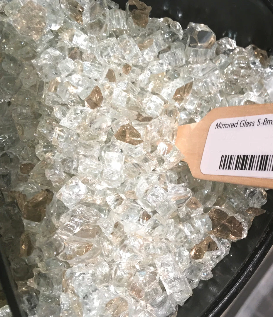 Make your decor sparkle with these stylish clear and silver mirrored glass chunks.