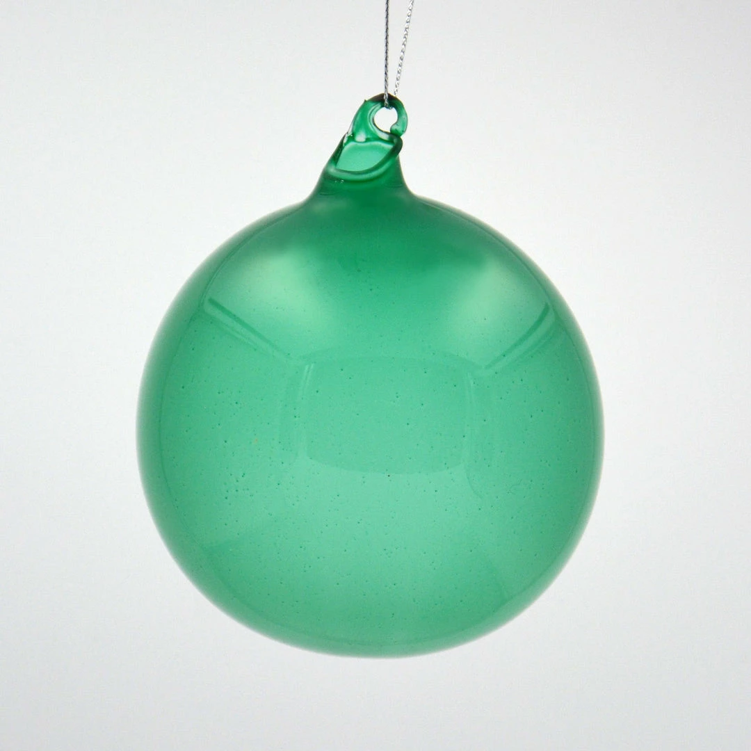 Personalize your holiday decor with these hand-blown Eucalyptus Green Bubblegum Glass Ball Ornaments by designer Jim Marvin.